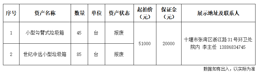一、拍賣標的:湖北省十堰市張灣區綜合行政執法局報廢資產