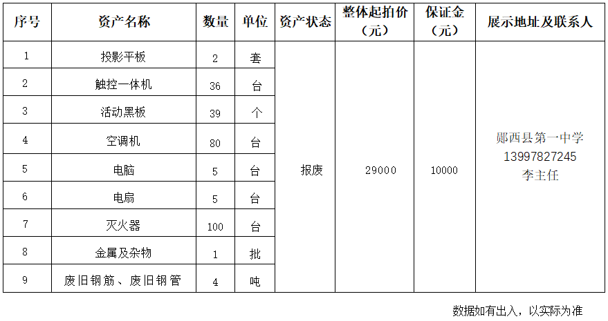1.湖北省十堰市鄖西縣第一中學(xué)報(bào)廢資產(chǎn):