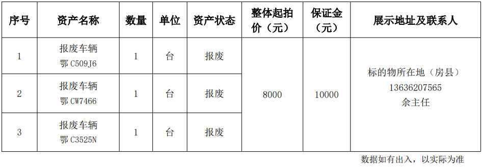 1.湖北省十堰市鄖西縣自然資源和規(guī)劃局報(bào)廢資產(chǎn):